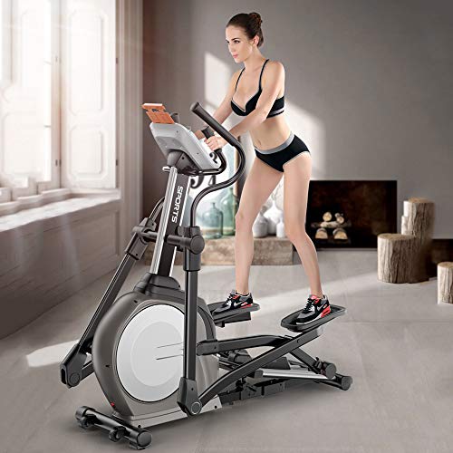 Elliptical Machine Cross Trainer, Front 8kg Two-Way Electromagnetic Control Mute Flywheel, 12-Speed Shift Resistance Adjustment, Multi-Function Display, Fitness Equipment Suitable for Home Use
