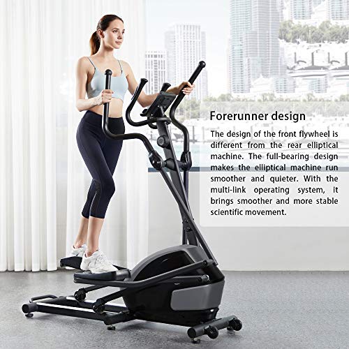 [Front drive design] The front flywheel design is different from the rear elliptical machine. The full-bearing design makes the elliptical machine run smoother and quieter. The multi-link operating system brings smoother and more stable scientific movement.