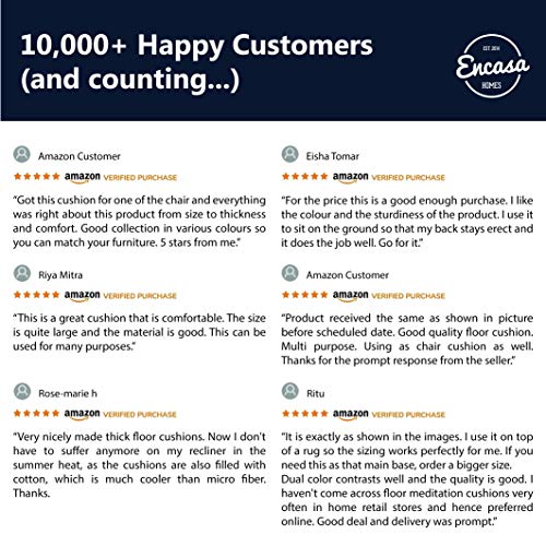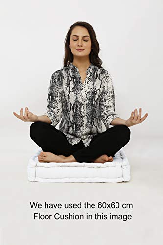LARGE SIZE: Cushion pads Large 20 x 20 inches with 4 inch height Floor chair pads with well filled with fresh polyester fiber, and finished with multiple tucks to keep the shape and bounce. Perfect size for an individual to sit cross-legged. These booster cushion specially developed in perfect size, thickness, density to give maximum comfort while practicing Yoga. Can be used as armchair cushions for elderly, dining chair booster cushion, in front of TV, for playing group games, in garden, etc.