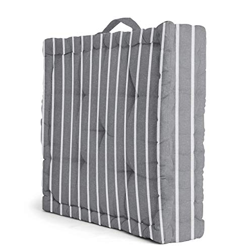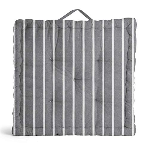 Encasa Homes Floor Cushion Large Square (60 x 60 x 10 cm) for Casual Seating & Pranayama Meditation Yoga – Roma Grey Stripes – Padded Decorative Fiber Filled Scatter Pillow for Indoor & Outdoor
