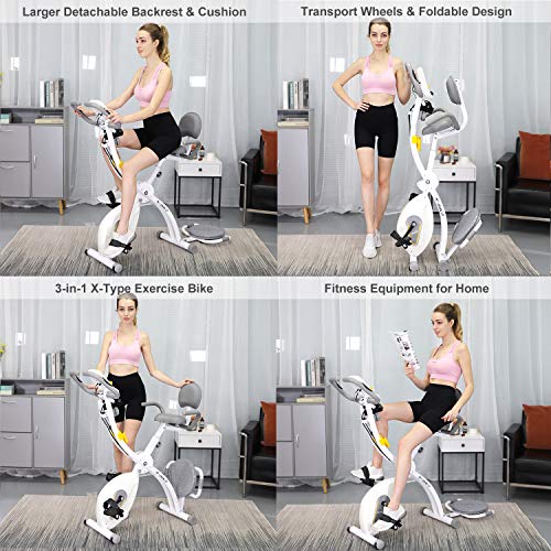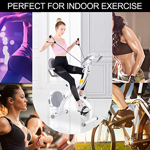 Extra Large & Adjustable Seat Suitable For Anyone – Wide & Comfortable seat for this folding indoor exercise bike with backrest and padded seat handle holds up to 250 lbs. The seat can also be adjusted to more closely approximate your situation, providing a smooth and consistent pedaling motion;