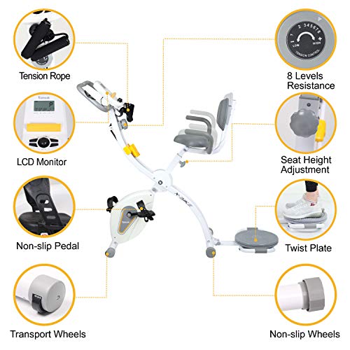 Multi-Functional Fitness Bike For Total Body – This updated exercise bike design with Adjustable Arm Resistance Bands, Twister Plate and Heart Monitor. Arm and leg resistance bands target various muscles while maintaining a full range of motion. Twister Plate help you exercise the strength of the waist core more effectively. Tighten/tone muscle while you enhance flexibility, strengthen you core and lose weight;