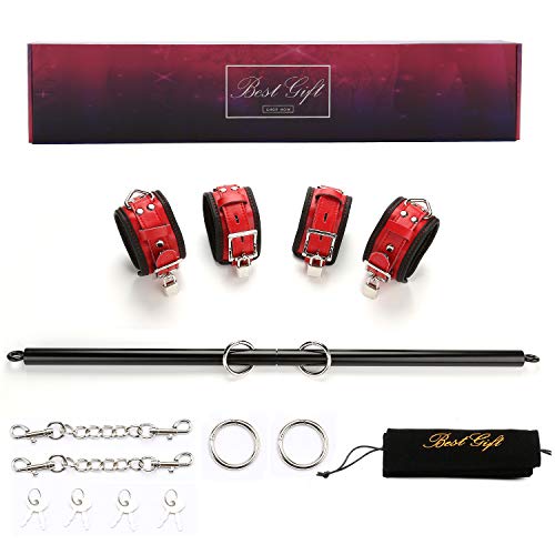 exreizst Expandable Spreader Bar with Adjustable Straps Kit Training Tools Set for Home Yoga, Black and Red