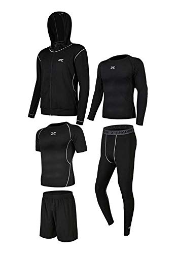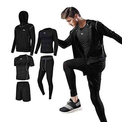 Fitness Suit Set, Men’s 5 Piece Running Suit Gym Outfit Workout Sports Wear Training Set