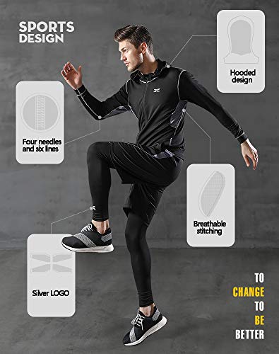Package include: Hoodies jackets*1, long sleeve compression t shirt* 1, short sleeve compression t shirt*1, running shorts*1,compression leggings*1