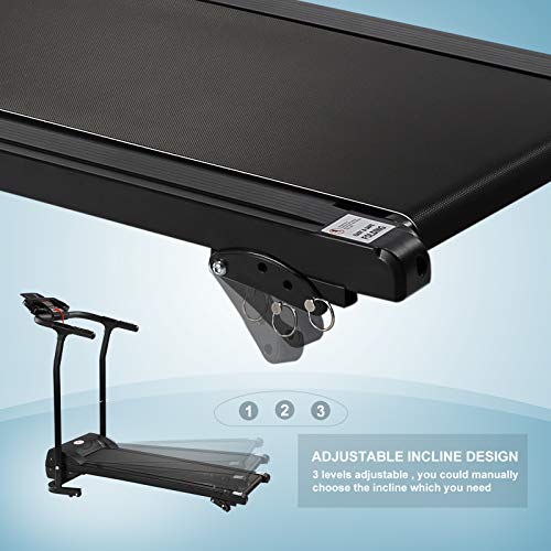 Adjustable incline design , 3 levels adjustable , you could manually choose the incline which you need ,durable, safe and convenient handlebars with hand grip pulse sensor, allow you to keep balance while providing comfort to your hands, a good size for walking/jogging/running,good cushioning for your ankle, back and knee joints