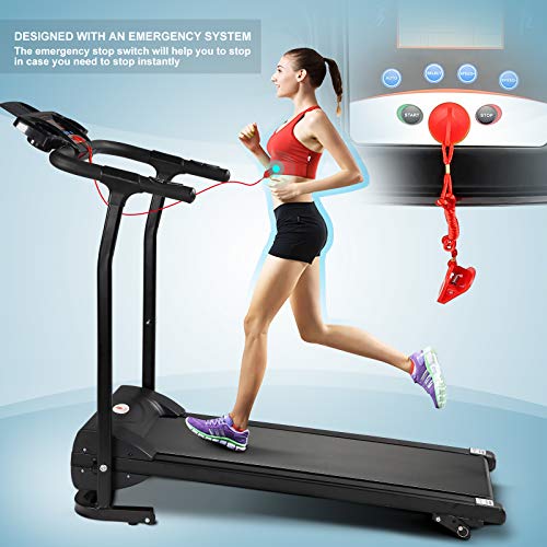 Designed with an emergency system , the red safety key can easily clamp to your clothes in case you need to stop instantly,the emergency stop switch will help you to stop in case that you fall down on the running belt