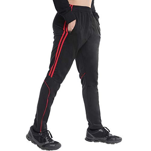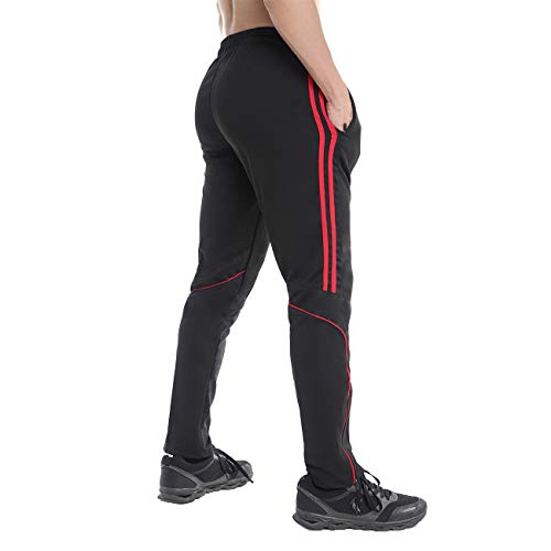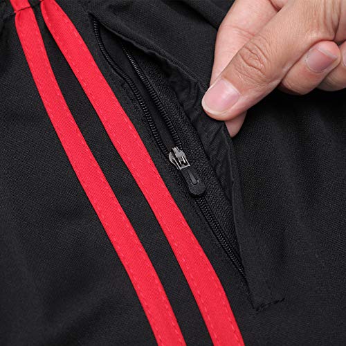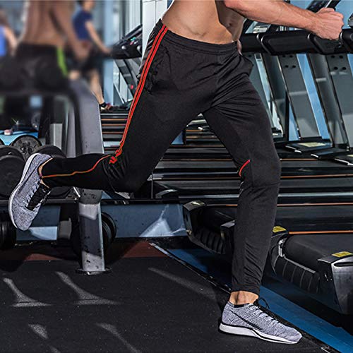 FITTOO Mens Athletic Sweat Pants Stripe Slim Workout Trousers Zipper Pocket Jogger Bottom with Side Taping