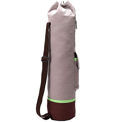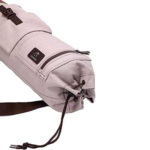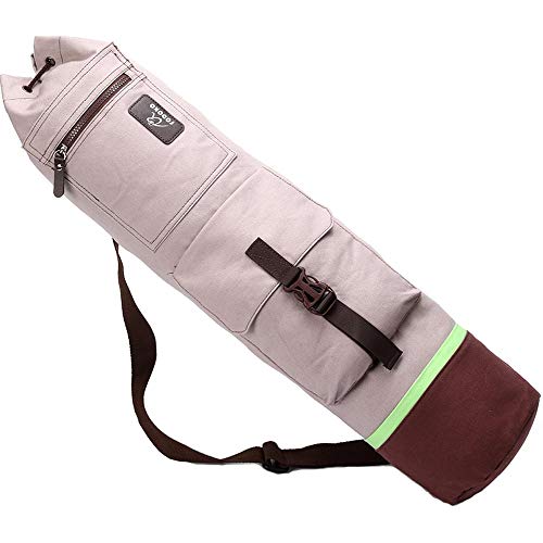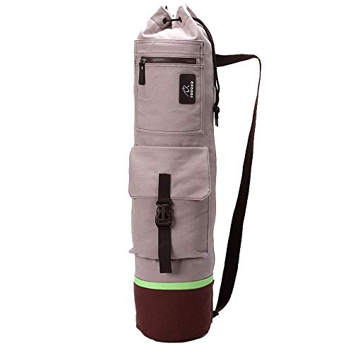 FODOKO Yoga Mat Tote Bag, Gym Bag Sling Carrier Canvas with Deep Front Pocket Zipper, Secret Storage, Adjustable Shoulder Strap