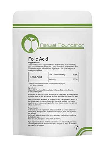 FOLIC Acid Vitamin B9 400mcg Tablets Pre Pregnancy | Natural Foundation Supplements