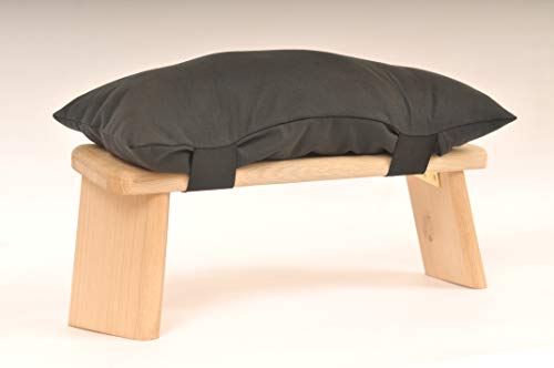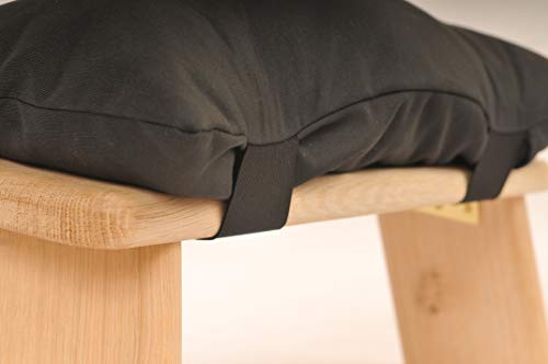 The cushions are designed to accompany my meditation stools and are hand made. The cushion cover is made from 100% hard wearing cotton and is fully washable. The cushion is held onto the stool by elastic straps that fit over the stool very easily for speedy removal and setting up. The cushion is 12 cm deep, 45 cm in length and 20 cm wide. Filling is hollow fibre ideal for allergy sufferers.