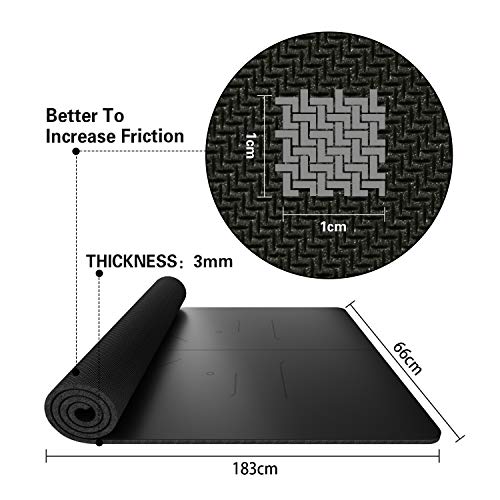 FrenzyBird PU Yoga Mat with Carrying Strap and Alignment Marks, Anti Slip and Easy to Clean, Provides Perfect Cushioning, Ideal for Beginners and Advanced Yogis