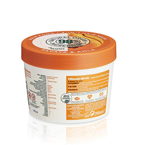 Garnier Hair Mask for Damaged Hair | Papaya Hair Food by Garnier Ultimate Blends, 3-in-1: Conditioner, Hair Mask, Leave-in Hair Conditioner | 98 Percent Natural Origin | 390 ml