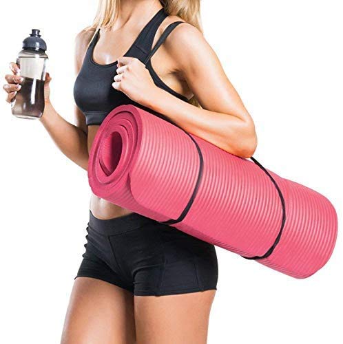 General Packaging Yoga Mat Extra Thick 15mm Non-Slip Pilates Workout Exercise Mat available in Black/Blue//Pink (Black)