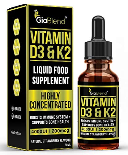GiaBlend Vitamin D3 (4000UI) & K2 (200mcg) Liquid Vitamin Drops – Maximum Strength, Plant-Based, Vegan, Gluten Free…