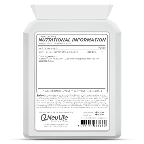 Ginger 12000mg x 120 Tablets | Nausea – Stomach Settler – Aids Digestion | Neulife Health & Fitness