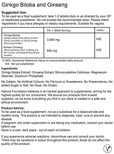 Ginkgo Biloba 3000 mg and Korean Ginseng 650mg Tablets High Strength | Natural Foundation Supplements