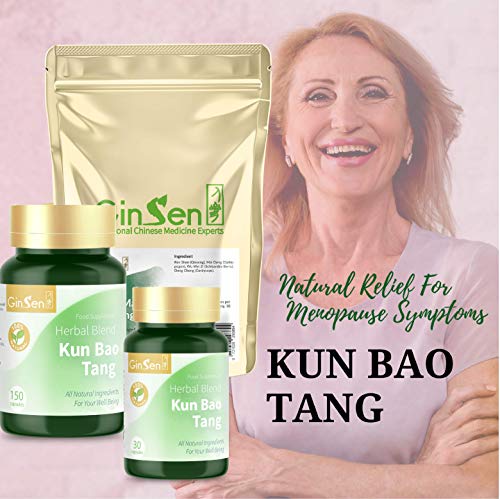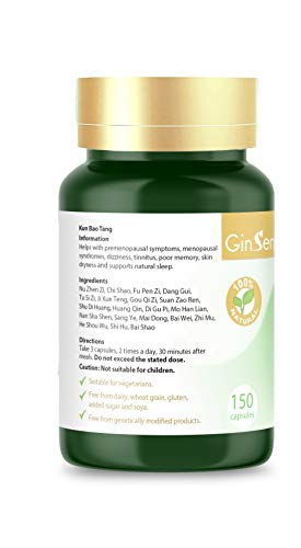 GinSen Kun Bao Tang Helps with Menopause, Hot Flashes, Night Sweats, Restlessness, Dizziness, Tinnitus, Poor Memory, Natural Supplement, Chinese Medicine, Made in UK (150 Capsules)