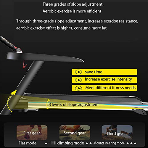 * Three grades of slope adjustment: aerobic exercise is more efficient, through the third grade of slope adjustment to increase exercise resistance, aerobic exercise effect is higher, consume more fat, flat mode, climbing mode, climbing mode, three modes for You choose