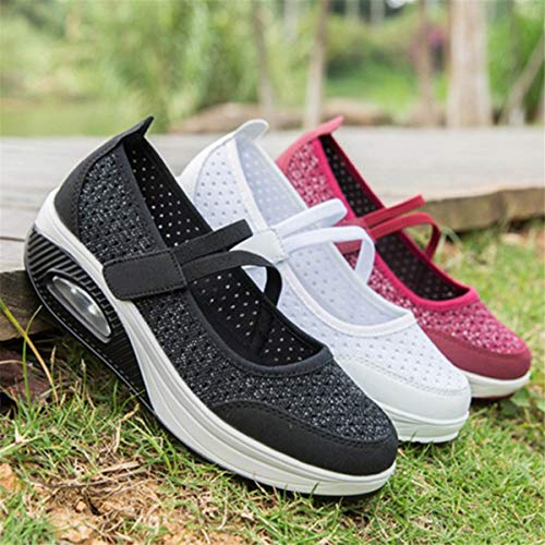 gracosy Women’s Mesh Walking Wedge Shoes Summer Breathable Casual Platform Trainers Sandals Slip On Toning Rocker Bottom Sneakers Non-Slip Lightweight Trainers Outdoor Sports Running Loafers Boat Shoe
