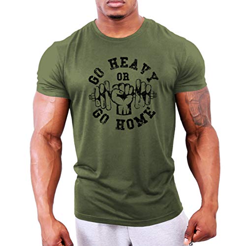 GYMTIER Mens Bodybuilding T-Shirt – Go Heavy or Go Home – Gym Training Top