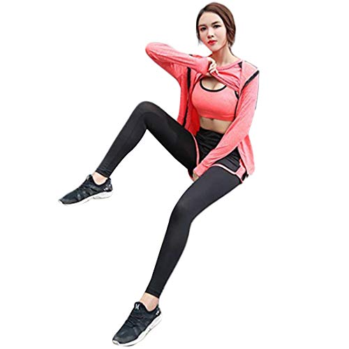 Inlefen Women’s Tracksuits Sets Sportsuit Set Soft Comfy Quick-Drying Running Jogging Gym Workout Sweatsuit 5 Piece Set Sports Bra,T-Shirt,Coat and 2 pcs Pants Ladies Sportwear Sets Yoga Clothing