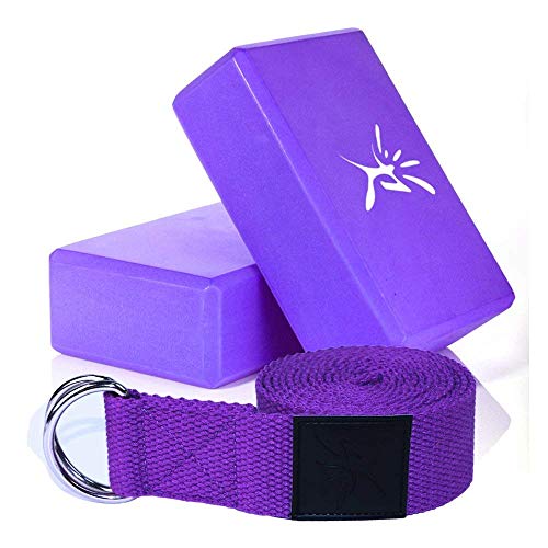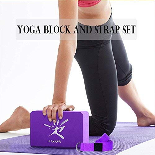 IVIM Yoga Pilates Foam Blocks (2 Pack) & D Ring Yoga Belt – Light Weight & Non-slip High Density Yoga Brick for Yoga, Pilates and Meditation to Improve Strength, Flexibility, Balance
