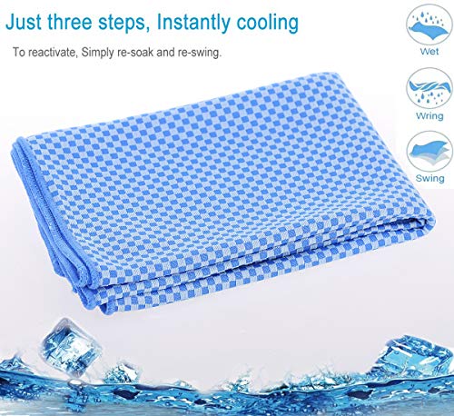 [Multifunction Towel] – Ice microfiber towel is perfect for all indoor and outdoor activities.It could be a great towel Suitable for Sports, Workout, Fitness, Gym, hiking, marathon, rock climbing, Yoga, Golf, Travel, Camping and cold therapy for fever, heat stress or hot flashes;towel for quick cooling down when working out in the summer heat or in hot environment. It can be used as head cover, sweatband, cooling bandana, neck wrap or scarf just as you like.