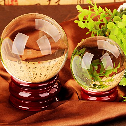 JJOnlineStore – 80mm round, clear crystal ball with wooden stand. Weighs approximately 1.3kgs (heavy and premium-feel)