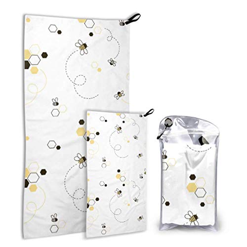 JOCHUAN Cartoon Doodle Cute Bees 2 Pack Microfiber Beach Towel For Boys Bath Towels Set Fast Drying Best For Gym Travel Backpacking Yoga Fitnes