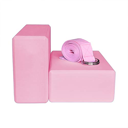 Junxia Yoga Blocks (2 Pack) and Yoga Strap Combo Set,High Density EVA Foam Blocks 3 x 6 x 9 Inches,Support and Improve Poses and Flexibility,for Beginners and Advanced Yogis