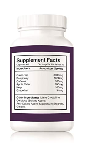 Raspberry extract (20% Ethanol 80% Water) 8:1 125mg providing, Green Tea,Kelp, Apple Cider, Caffeine, Grapefruit, Magnesium Stearate,Gelatin