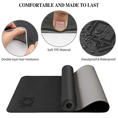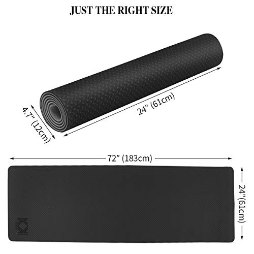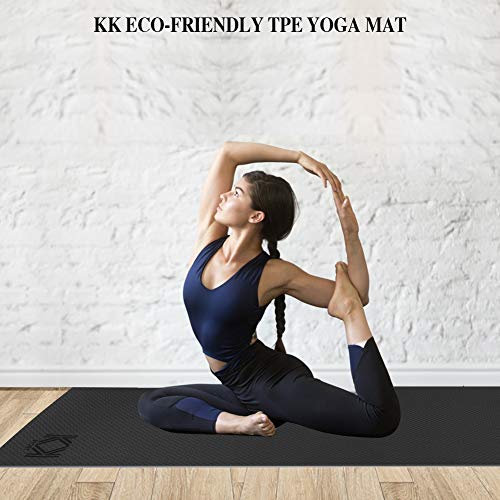 KK Yoga Mat, Non Slip Exercise Mat , Extra Grip TPE Eco Friendly workout mat for women and men with convenient Carry bag. 183cm Fitness Mat for Yoga, Pilates, Gymnastics and more. 6mm (¼ inch) thickness.
