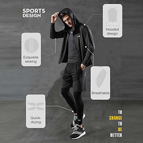 ♕Ultra-light weight smooth comfort fitting 5 in 1 set. Hoodies jackets + long sleeve&short sleeve compression t shirt + running shorts + compression leggings.