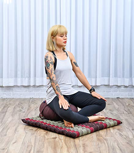 Comfortable, stable and breathable thanks to the use of natural plant materials. Perfect for your meditative hours. Yoga Floor cushion Zafu with carrying strap. Useful: meditation pad / Zabuton floor mat can be rolled for storage and transport.