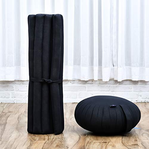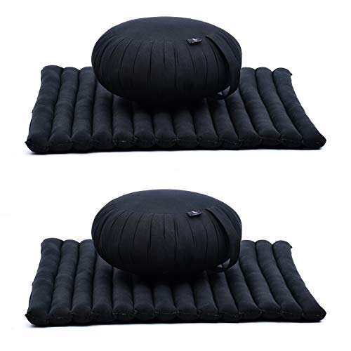 Leewadee Pack of 2 Meditation Cushion Set: Round Zafu Pillow and Large Square Zabuton Mat For Floor Seating Eco-Friendly Organic and Natural, Kapok