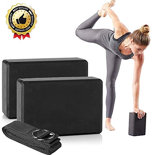 LEEWENYAN Yoga Block Set, High Density EVA Foam Exercise Blocks and Yoga Straps Non-Slip Improve Your Poses and Flexibility Provides Stability and Balance Deal for Beginners, Pilates, Fitness, Gym