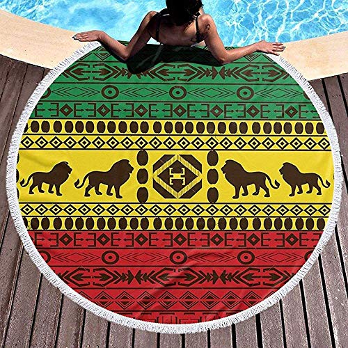 Leo-Shop Round Beach Towel Blanket African Traditional Pattern Lions Rasta Jamaica ExtraBig Outdoor Travel SwimBlanket Thin Yoga Mat