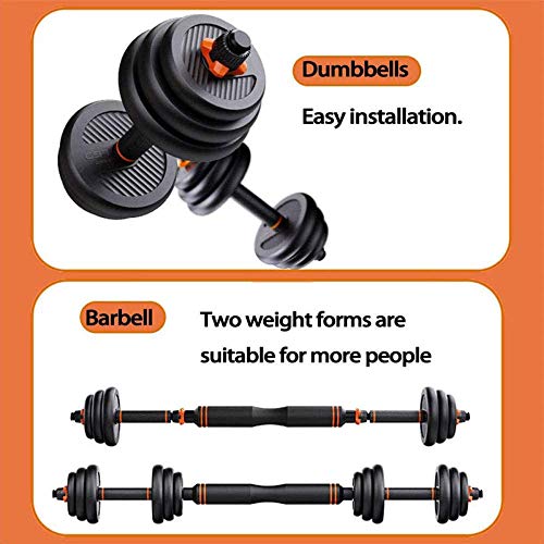 Dumbbells set can be used as dumbbells and as a barbell. The weight of dumbbells can be adjusted at will to meet daily exercises needs.