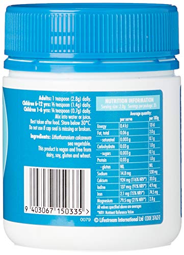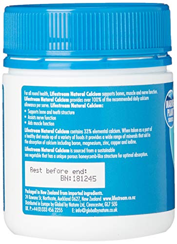Product Description Lifestream Organic natural calcium powder is produced from a certified organic sea vegetable called Lithothamnium calcareum. Helps to build strong healthy bones and nails. Helps to support bone density and strength as you age. Supports skeletal strength and posture of the spine. Strengthens and builds strong healthy teeth. Lessens the physical and emotional experience of PMS. Good bioavailability and well absorbed by the body. Contains other necessary minerals including magnesium, zinc, boron, selenium. Available in 100 g. Ingredients SEA-VEGETABLE (LITHOTHAMNIUM CALCAREUM) 100% – NO ADDITIVES OF ANY KIND. See all Product description