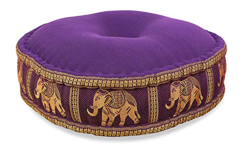livasia Colourful Zafu Meditation Cushion for Yoga filled with 100% organic Kapok Seat Thai Silk (purple elephant)