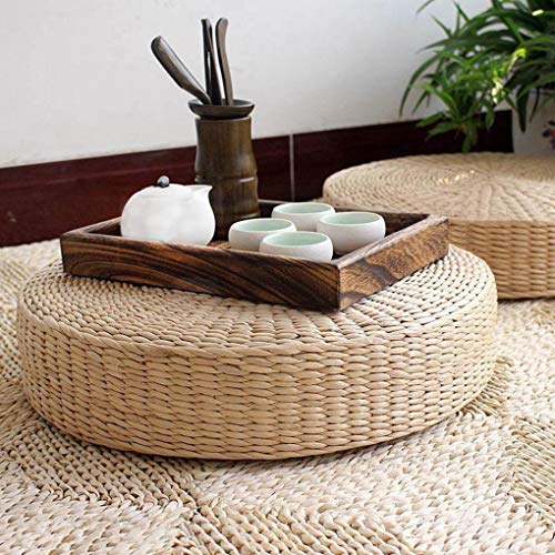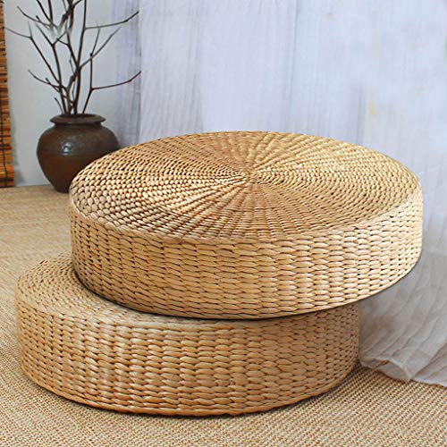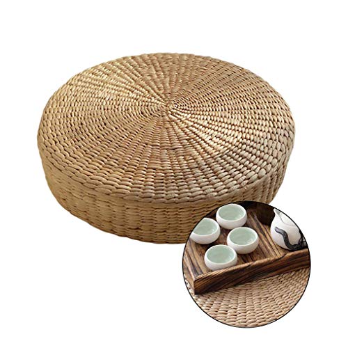 Lorsoul Floor Pillow Eco-Friendly Round Straw Cushion Hand Woven Tatami Floor Mat Yoga Tea Ceremony Meditation Pad