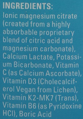 IONIC MAGNESIUM CITRATE (CREATED FROM A HIGHLY ABSORBABLE PROPRIETARY BLEND OF CITRIC ACID AND MAGNESIUM CARBONATE), ZINC PICOLINATE, IONIC CALCIUM CHLORIDE, POTASSIUM BICARBONATE, VITAMIN C (AS CALCIUM ASCORBATE), VITAMIN D3 (CHOLECALCIFEROL VEGAN FROM LICHEN), VITAMIN K2-MK7 (TRANS), VITAMIN B6 (AS PYRIDOXINE HCL), BORIC ACID.