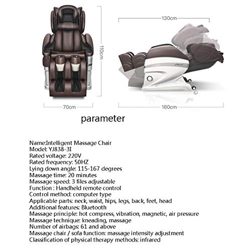 Massage chair YJ838-3I Electric, 3D Surround Sound – Air Massagers – Zero Gravity – Heat Massage In The Back-Rolling kneading Massage can Reduce The Treatment of Body Pain.
