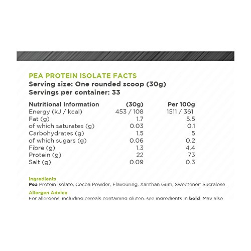 LOW FAT: Pea Protein Isolate is also low in fat including only 1.7g per serving, only 0.03g of which are saturated.