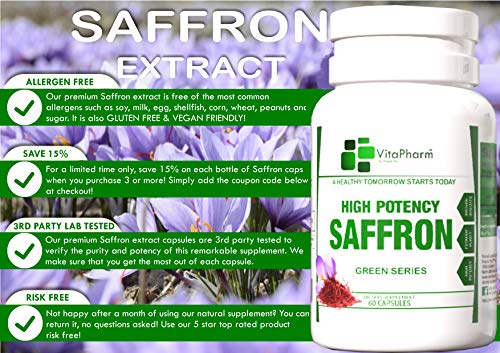 ✅ * 100% MONEY BACK GUARANTEE * Amazing Top Rated 5 Star Results Means That You Can Buy The Product With Confidence As Well As The Fact That We Are A Big And Established Brand In The USA And Europe. Best Pharmaceutical Grade Dr Recommended Saffron Supplement EVER! All Our Products Are 3rd Party Tested To Verify The Purity Of Each Pill, Only The Best Will Do!