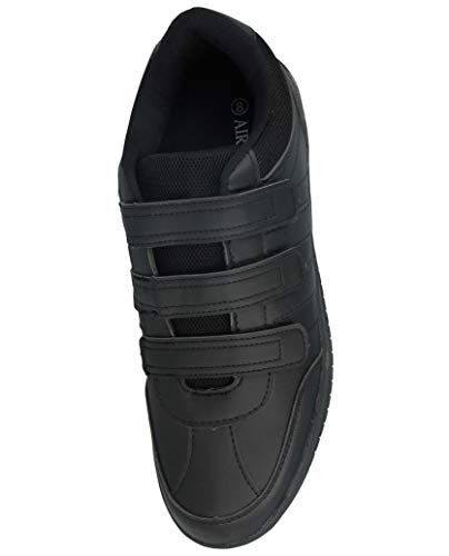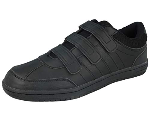 Mens Black Faux Leather PU Triple Touch Close Fastener Mesh Original Athletic Plimsoll Sneakers Trainers Size 7-12