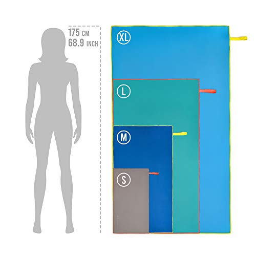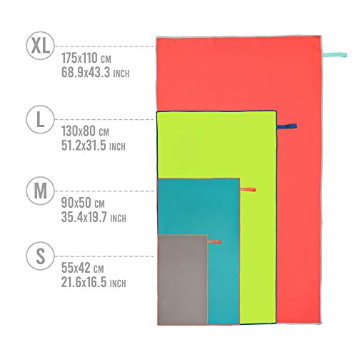 MODERN DESIGN AND DIFFERENT SIZES – Microfiber towel comes with nice looking colour variations which will make you stand out of the crowd. Modern looking design will fit to everyone: women, men, teenagers and children. Everyone can find matching style for themselves! Available sizes: S (42 x 55 cm), M (50 x 90 cm), L (80 x 130 cm), XL (110 x 175 cm).