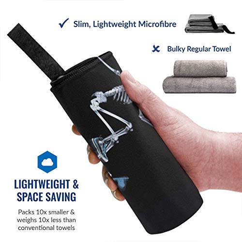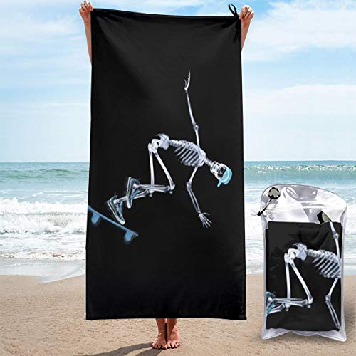 Microfibre Beach Towel Extra Large -160cm x 80cm Quick Dry XL Lightweight Towel with Easy Zip Bag – Perfect for Beach, Travel, Yoga, Sports, Gym, Swimming & Camping, Skull Skate Skateboard