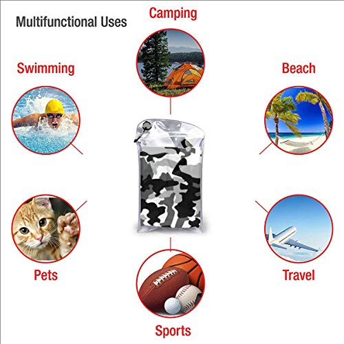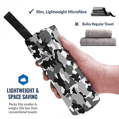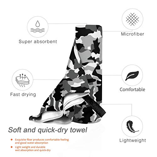 Microfibre towel lightweight travel beach towel | Extra large quick drying camping towel Premium gym towels for swimming yoga | Highly absorbent fast dry | Black And White Pattern Camo